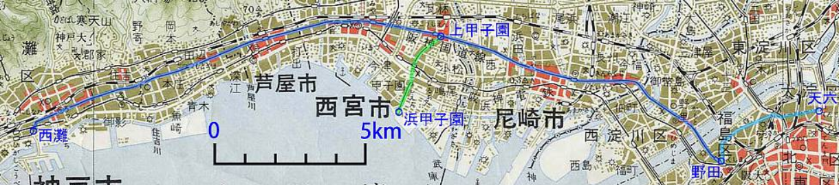 ・北大阪線:野田~天神橋筋6丁目4.3km(下図水色線)