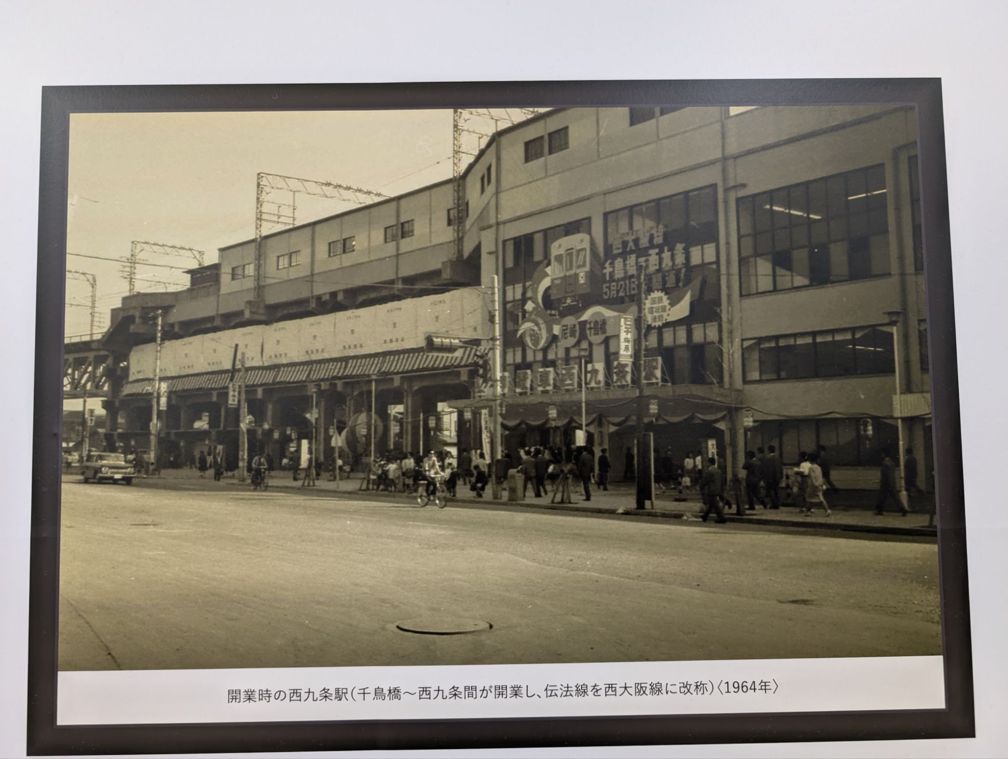 1964年、西九条駅は阪神電鉄の伝法線が千鳥橋から延伸されたことで誕生しました。同時に路線名も「西大阪線」に改称され、地域の交通の要所として新たな役割を担うことに。写真は開業当時の駅の様子を伝える貴重な一枚です。