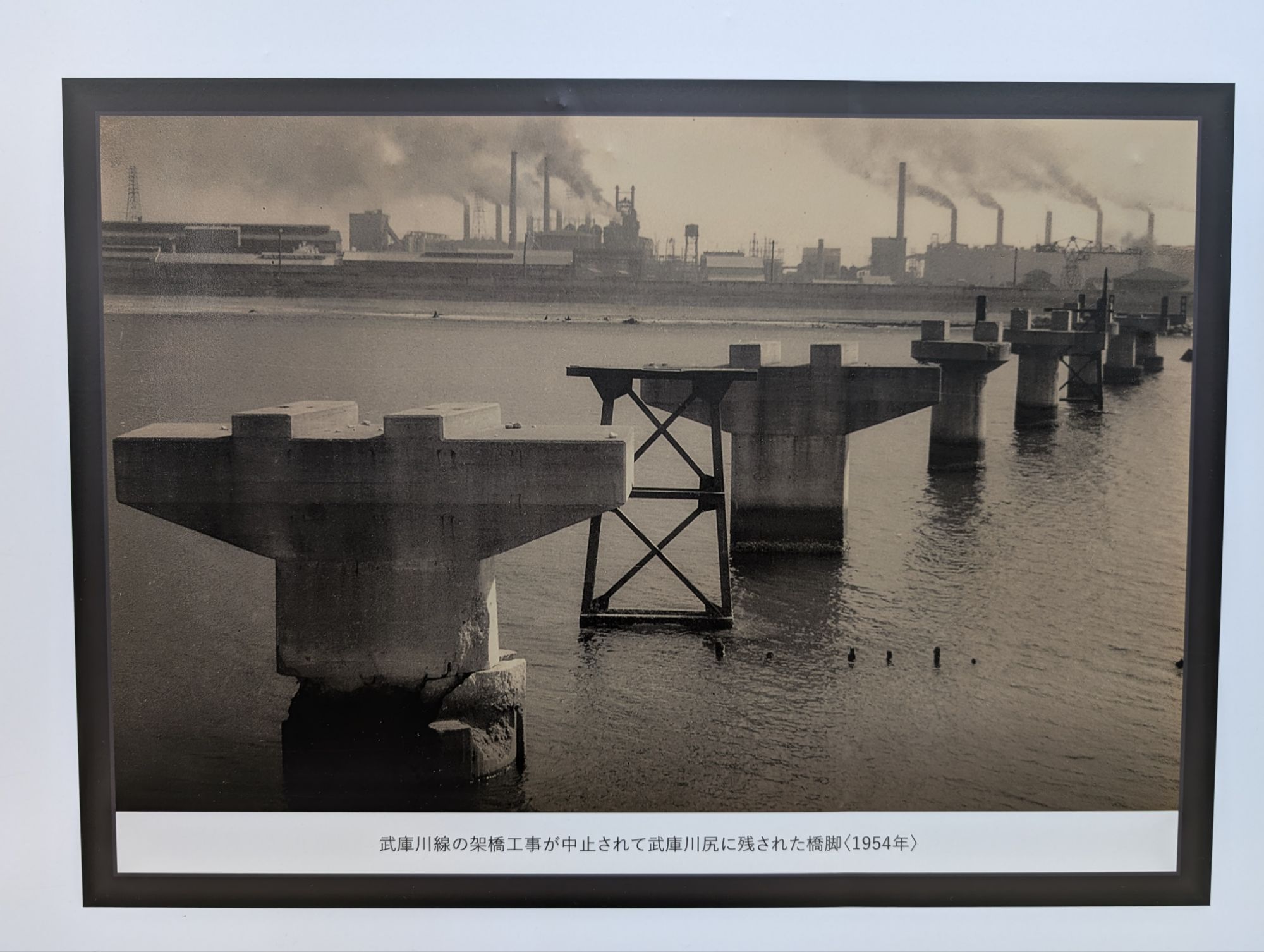 1954年、阪神電鉄が武庫川に新たな橋を架ける計画を進めていましたが、工事は途中で中止されました。その結果、川尻には未完成の橋脚だけが残され、静かに時を刻んでいます。写真は、幻となった鉄道構想の名残を伝える貴重な記録です。