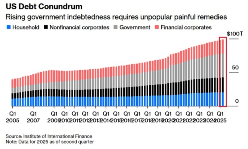 - 政府(連邦政府)の債務(総連邦債務)は、2025年9月時点で約 37.4 兆ドル。総GDP比では約123%程度。