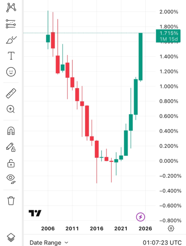 近年、世界の金融市場は、日本の10年物国債利回りが 1.71% という水準に達したことで、大きな転換点を迎えている可能性があります。