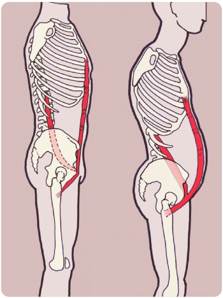 図の左側は、大腰筋がしっかりと機能している状態に近いイメージです。